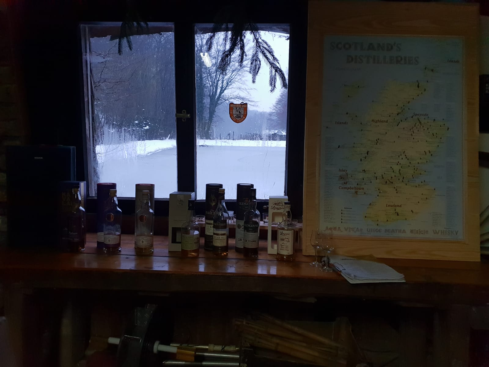 Das zweite Tasting am Fischteich in kleiner Runde fand in winterlicher Idylle wieder bei den Colonia Fischdieben statt. Wiederum starteten wir mit einem Kavalan, der heute als Vertreter der Malts aus frischen Bourbon-Fässern stand. Dann folgten zwei Malts aus der neuen Discovery Range von Gordon & Macphail, die das "Mini-Tasting" vor der Pause komplettierten.