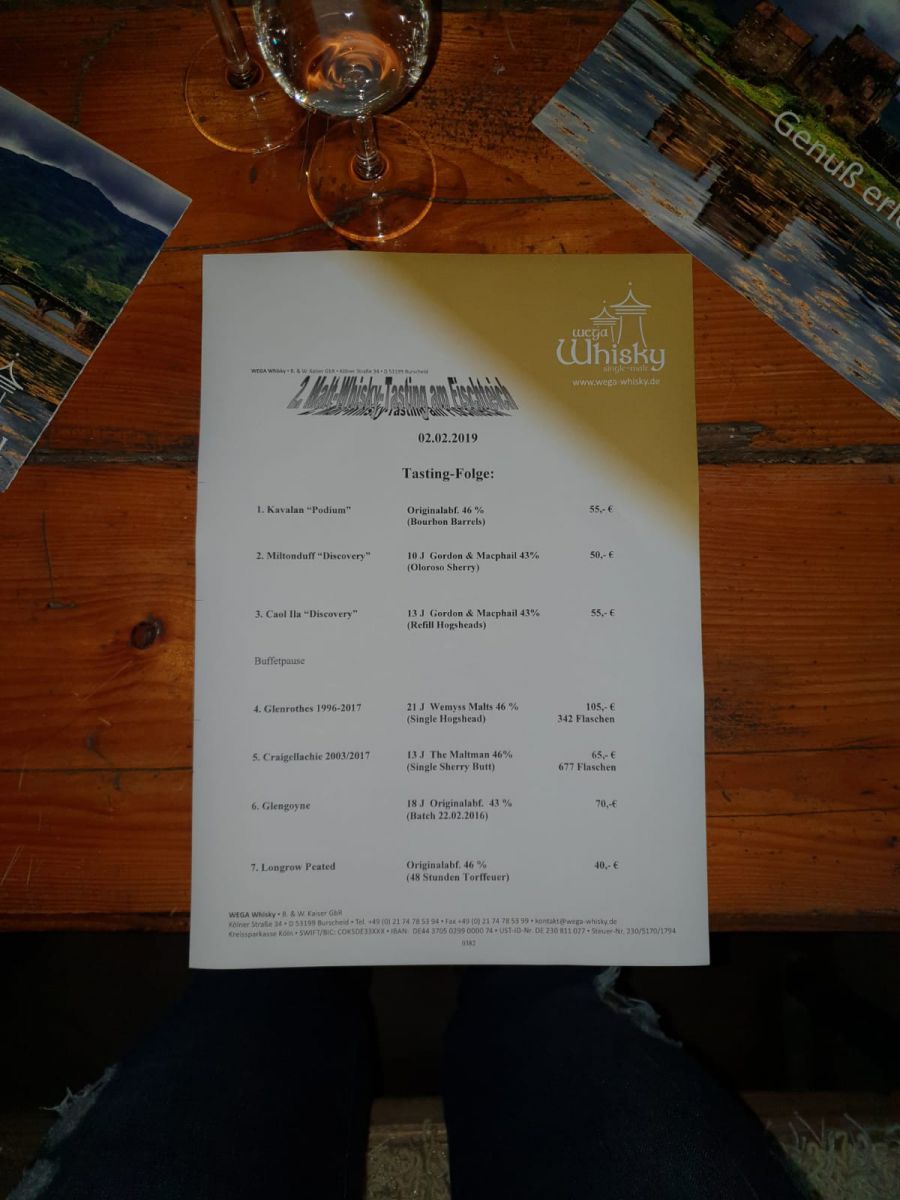 Das zweite Tasting am Fischteich in kleiner Runde fand in winterlicher Idylle wieder bei den Colonia Fischdieben statt. Wiederum starteten wir mit einem Kavalan, der heute als Vertreter der Malts aus frischen Bourbon-Fässern stand. Dann folgten zwei Malts aus der neuen Discovery Range von Gordon & Macphail, die das "Mini-Tasting" vor der Pause komplettierten.